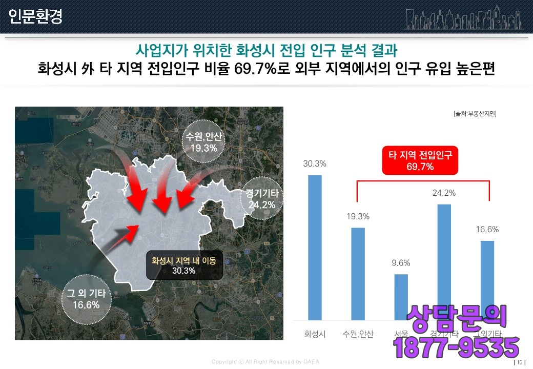 화성(火星)의 인구(人口) 변화(變化)를 보면 타(他) 지역(地域)에서 전입(轉入)하는 인구(人口) 비율(比率)이 높은 것이 특징(特徵)으로 주변(周邊) 지역(地域)에서 들어오는 인구(人口) 비율(比率)이 무려(無慮) 70%에 가까이 이르는 것으로 파악(把握)되고 있습니다.