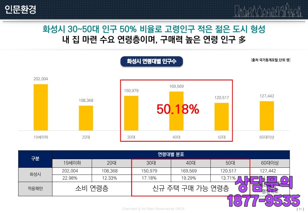 화성 슬항리 서희스타힐스 6차 인근(隣近)으로는 풍부(豐富)한 일자리 환경(環境)과 신도시(新都市) 조성(造成)으로 구매력(購買力)이 높은 젊은 인구(人口)가 많은 것도 특징(特徵)으로 30대(代)에서 50대(代) 인구(人口)가 50%가 넘는 도시(都市)이기도 합니다.