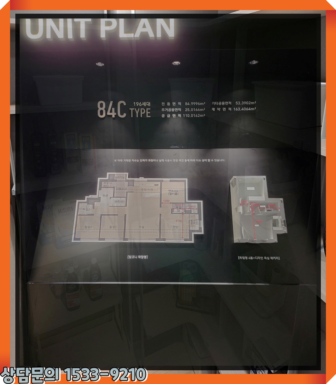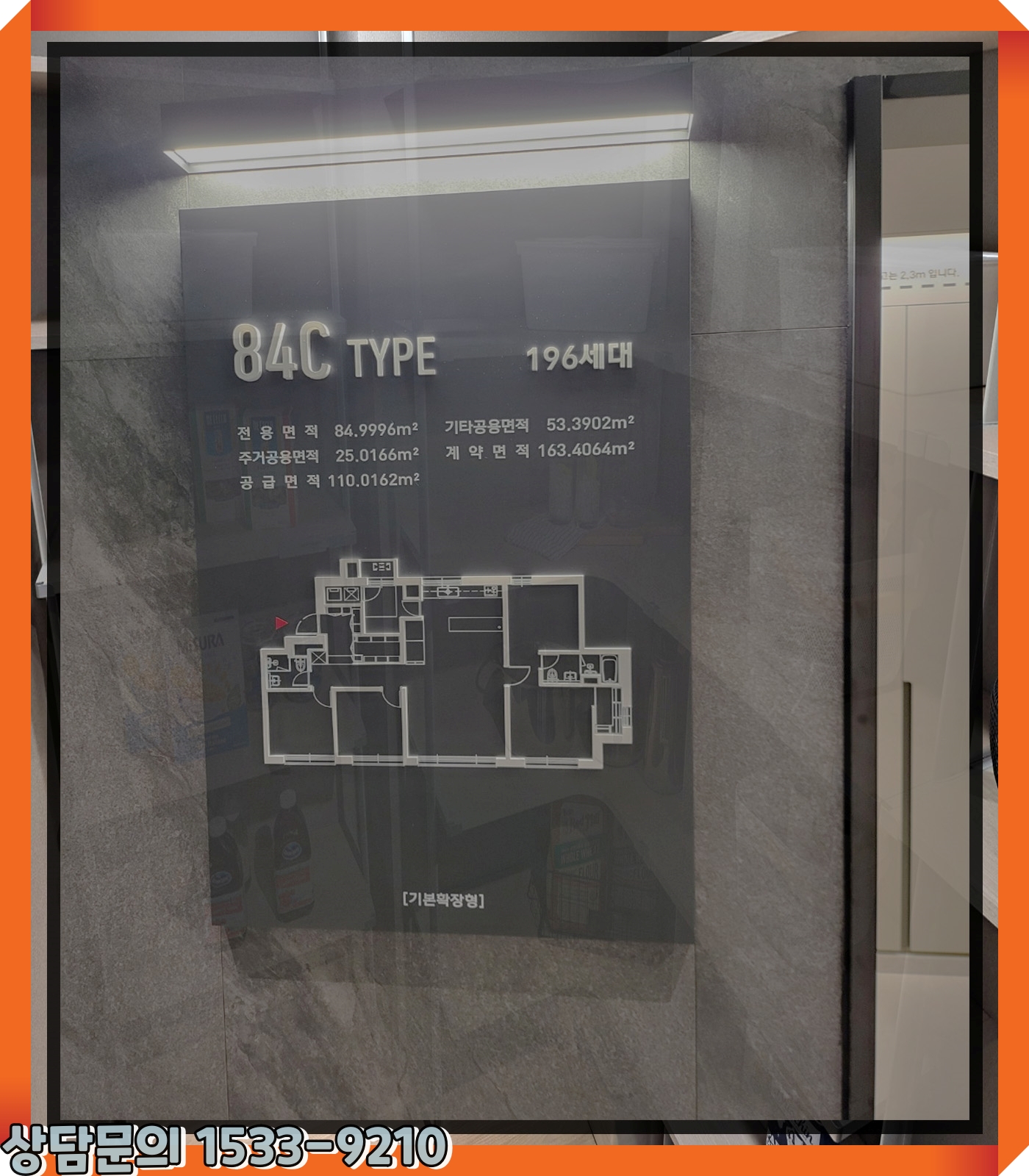 전용면적(專用面積) 84제곱미터의 내부공간(內部空間) 특징(特徵)은 현관문(玄關門)을 열면 내부(內部) 공간(空間)이 보이는게 아닌 벽(壁)이 보이고 한번(番) 꺾어서 내부(內部)로 진입(進入)하기때문에 세대(世代) 내 사생활(私生活) 보호(保護)에도 좋으며 대형평형(大型平衡) 못지 않은 넓은 현관(玄關) 펜트리가 제공(提供)됩니다. 또한 C와 D타입의 경우(境遇)엔 넓직한 멀티룸이 제공(提供)되어 서재(書齋) 또는 드레스룸으로 활용(活用)하기 좋습니다.